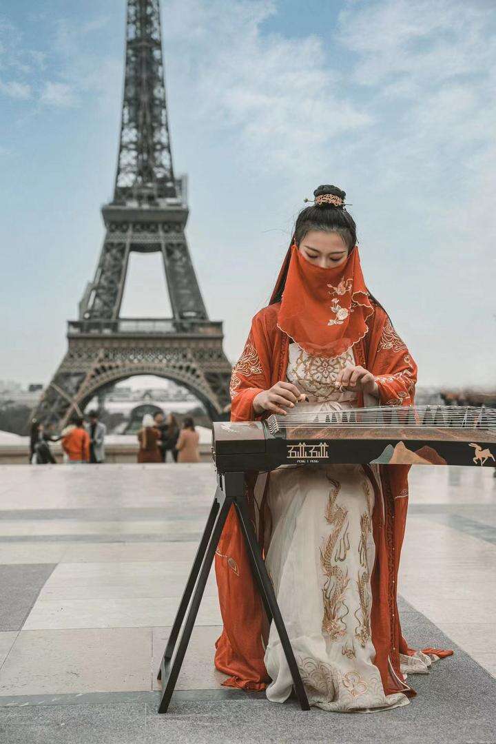 下一年的新学期,彭静旋从国内运来古筝,精心挑选曲目,开始在街头弹奏。从那之后,历史悠久的波尔多大剧院广场前,出现了一个穿着汉服、戴着面纱的东方女孩,她拨弄琴弦,时而清脆、时而浑厚、时而悠扬的音乐自在流淌。