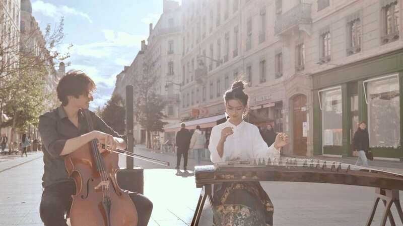 去年冬天,彭静旋邀请法国大提琴家菲利克斯一起合作。一个是低频浓厚的线状乐器,一个是高频清亮的点状乐器,在阳光明媚的下午,一首《浮光》在里昂街头奏响。