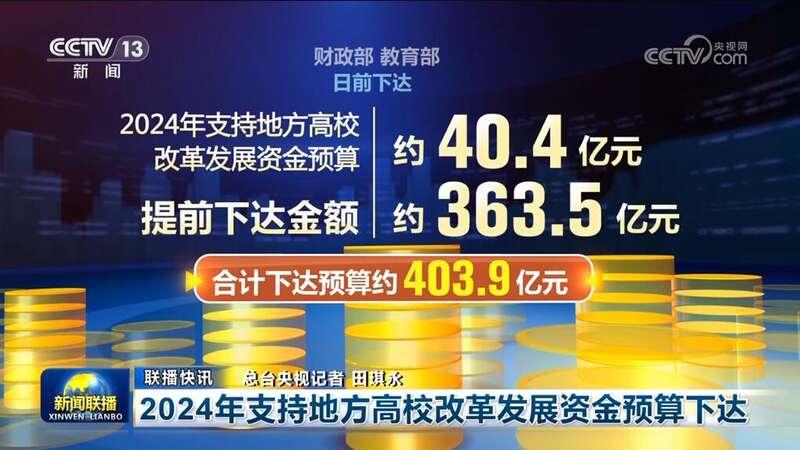 财政部、教育部日前下达2024年支持地方高校改革发展资金预算约40.4亿元,加上提前下达金额约363.5亿元,合计下达预算约403.9亿元。下达资金纳入直达资金管理,突出支持重点,向困难地区、民族地区和薄弱环节倾斜。
