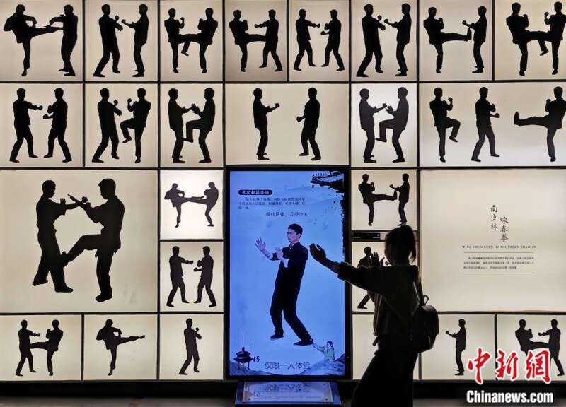 2024年2月,参观者在福建福州闽侯县博物馆里学练咏春拳。王东明 摄