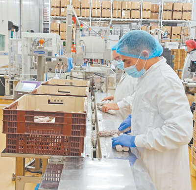 萨高公司总经理尼古拉·图努瓦介绍,法式干香肠是法国传统食品,将调好味的肉馅填充进天然肠衣,经过发酵和干燥,表面形成细腻的面粉状纹理,口感既有嚼劲又不干涩。根据调味料和肠衣类型的不同,法式干香肠分为众多品种。公司车间里有较粗的干香肠,也有体积较小、像零食一样的肉枣,装在巴掌大小的彩色包装袋里。“小包装肉枣在中国市场非常受欢迎。”图努瓦说。