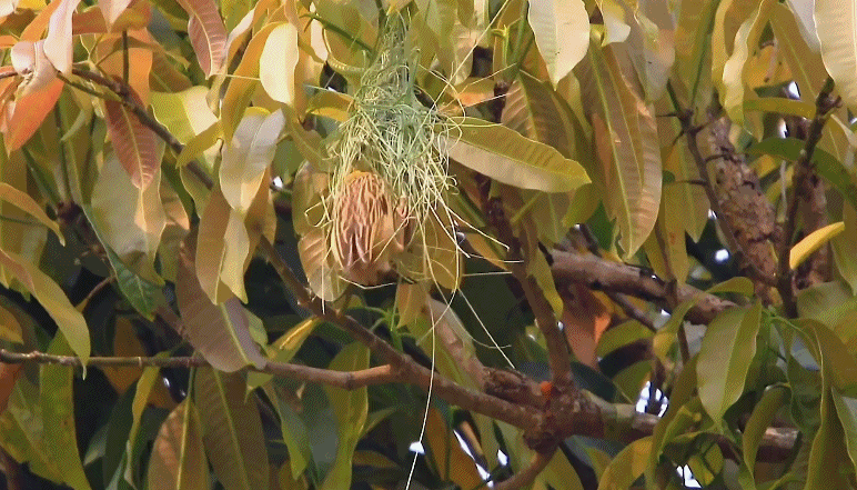 据了解,每年四月到五月,黄胸织布鸟都会陆续来到孟连县的竹林、芒果树、菠萝蜜树上筑巢安家,到九月初完成繁殖才会离开。