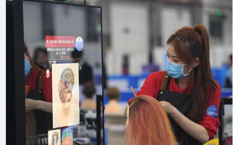 美发赛项目比赛现场。孙兴伟/摄