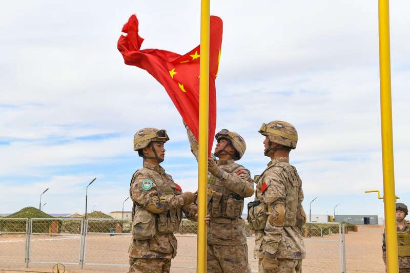 中蒙“草原伙伴-2024”陆军联合训练开幕式升旗仪式。朱甫鑫/摄