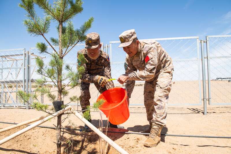 开训仪式结束后,双方指挥员和部分官兵合影留念,蒙方精心准备了热情洋溢的马头琴演奏和歌曲独唱。随后,双方共植中蒙友谊林,助力两国携手应对土地荒漠化和沙尘暴,共同完成环境和生态改善目标,造福于两国人民。