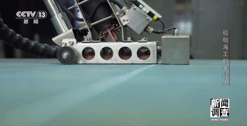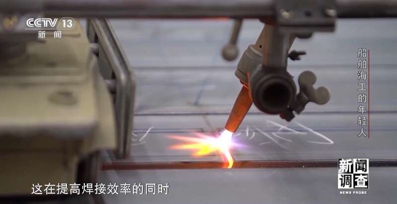 上海外高桥造船有限公司精度技术部高级工程师 邓琳:一方面焊接效率高了,把热量用在刀刃上了。第二它不会影响非焊缝区域的热循环,激光能把温度集中在非常细的、窄的一条线上,就不会影响边上的变形。