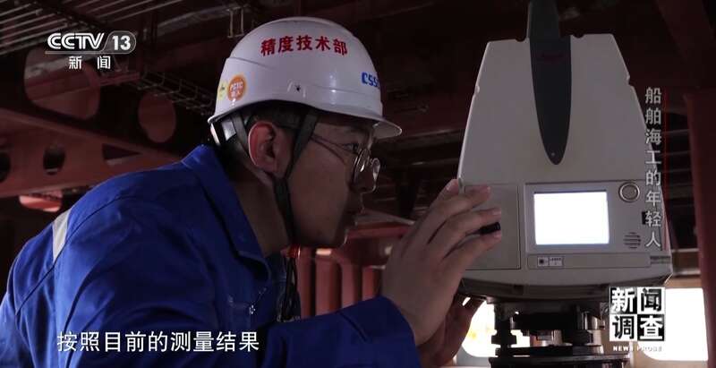 上海外高桥造船有限公司精度技术部副部长 孙建志:“爱达·魔都号”是我们国产首制的大型豪华邮轮,它的主体结构基本上16层甲板都是薄板结构,整体占比在70%以上,我们从造船业来讲,薄板的建造的工艺,一直是在船舶行业里比较难以突破的一个技术。