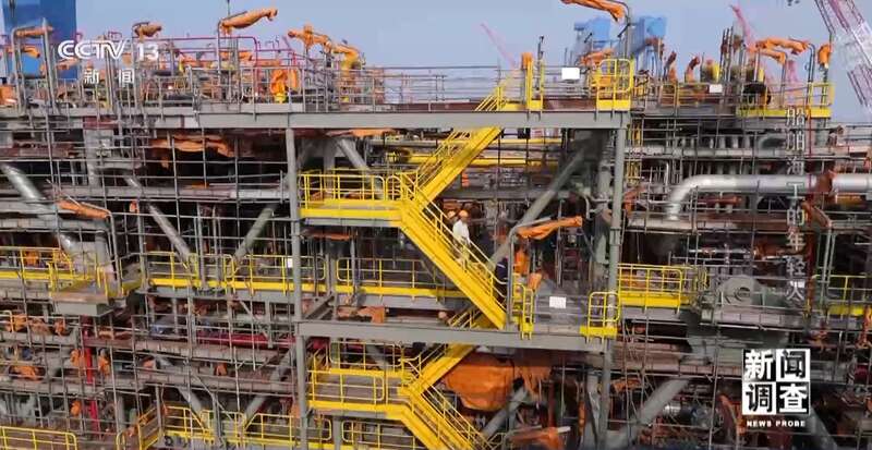 启东中远海运海洋工程有限公司高级工程师 孙博文:这个模块是液化石油气的压缩和蒸汽回收压缩的一个模块,这一个模块就相当于陆地上的一个压缩车间。