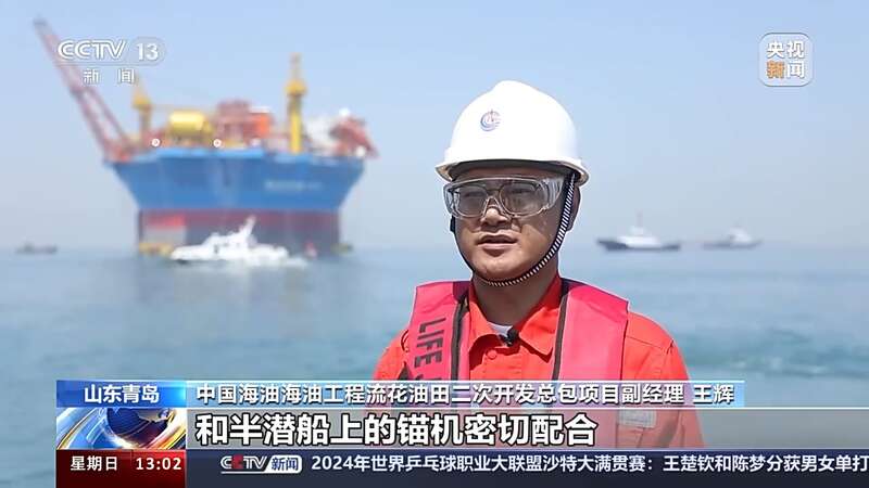中国海油海油工程流花油田二次开发总包项目副经理 王辉:装船过程需要使用6艘船舶,和半潜船上的锚机密切配合,整个过程像“穿针引线”一样,将“海葵一号”精确装载到预定位置,再通过排出压载的海水,同时借助潮汐力量和海水的巨大浮力,轻松举起“海葵一号”。