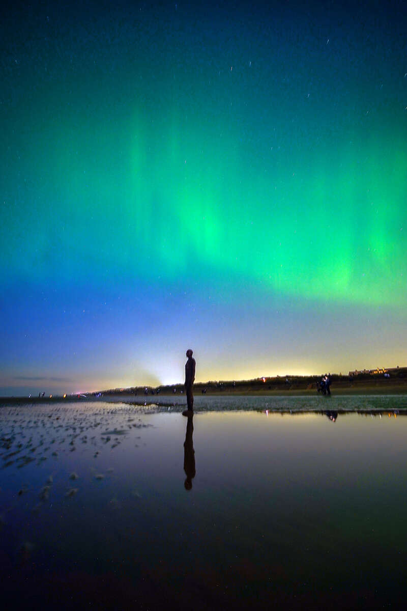 5月10日,英国默西赛德郡利物浦,克罗斯比海滩上空出现极光。