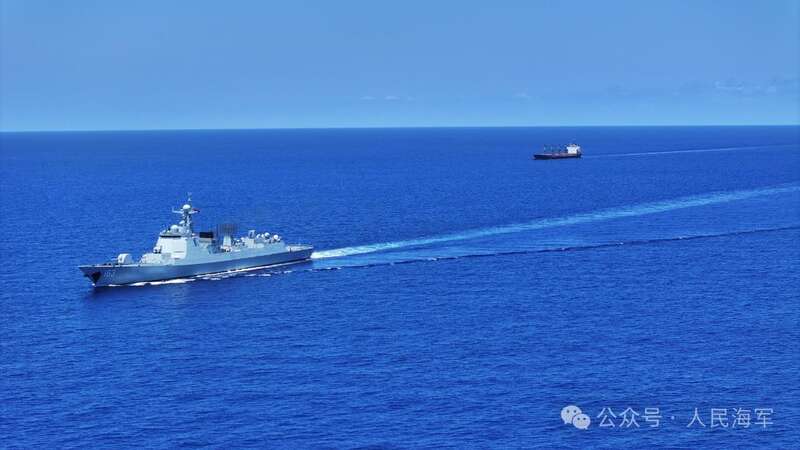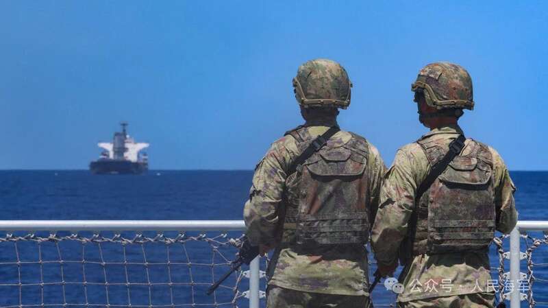 △焦作舰为“兴通开盛”号化学品船伴随护航。张大禹 摄