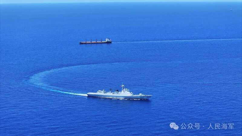 △焦作舰为“无限”号散货船伴随护航。张大禹 摄