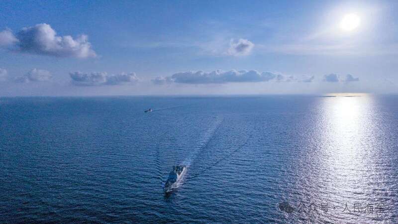△焦作舰与“无限”号散货船解护。张大禹 摄