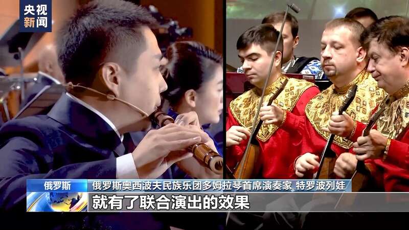 俄罗斯奥西波夫民族乐团多姆拉琴首席演奏家 特罗波列娃:我们录制我们的部分,中国乐团录制他们的部分。经过专业人士的剪辑后,就有了联合演出的效果。