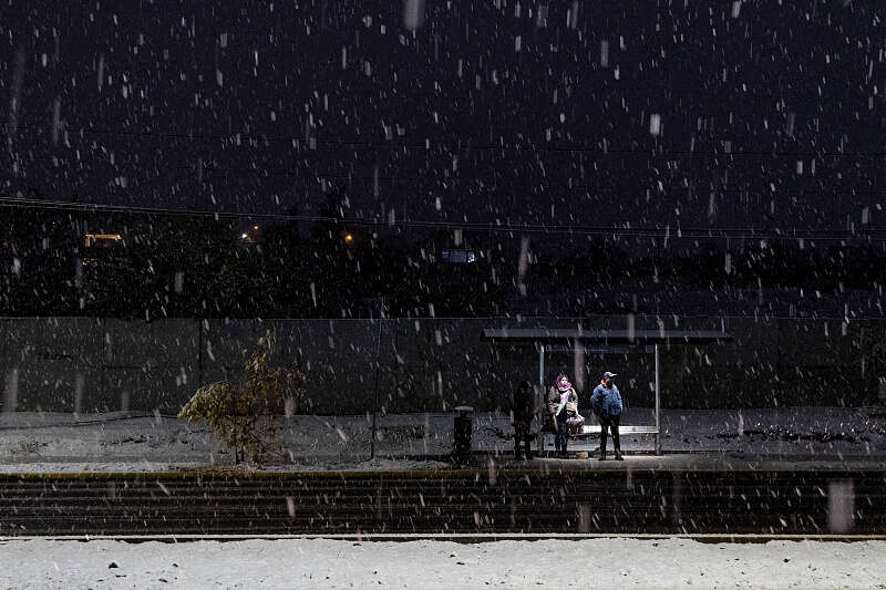 △当地时间5月7日,智利圣地亚哥的民众在大雪中等待公交车。