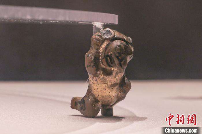 5月16日,南昌汉代海昏侯国遗址博物馆内展出的漆樽构件青铜足。 中新社记者 刘力鑫 摄
