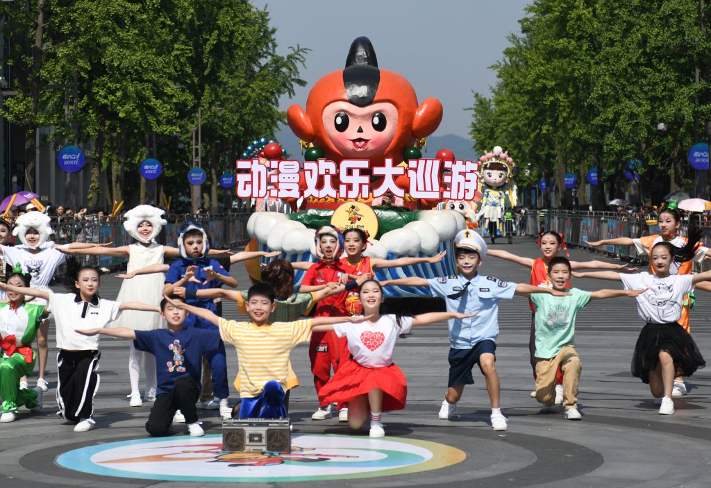 2024年5月18日,第二十届中国国际动漫欢乐大巡游活动在杭州湖滨步行街精彩上演。