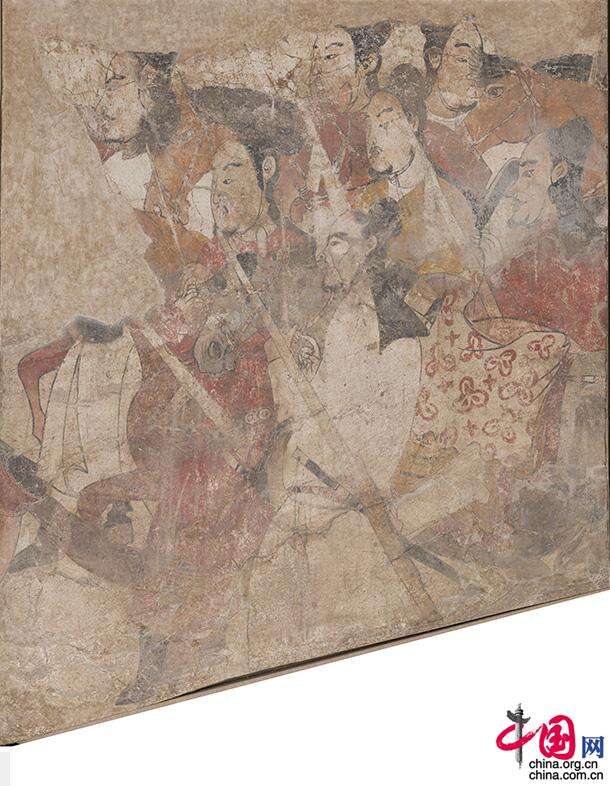 王江: 南北朝是民族大融合、大互动的时期,北部游牧文化和南部农耕文化在山西晋阳地区交融交汇。壁画中充满异域风情的胡人、胡服、胡乐就是民族融合、文化交流的生动见证。
