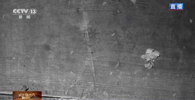 总台央视记者 赵晶:考古人员昨天从东一室中提取了在武王墩一号墓发现的最大的一件青铜器:一件大铜鼎。随着这件铜鼎提取完成后,整个东一室的器物就已经全部提取完毕了。不过,考古人员在东一室里有了新发现,他们通过红外照相机,发现在椁板上面出现了文字。