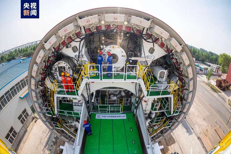 针对项目情况“量身定制”的这台“山河号”泥水平衡盾构机,最大开挖直径17.5米,盾构机总长163米、重约5200吨、装机总功率12580千瓦;配备各类型开挖刀具共计306把,其中57把具备滚齿互换功能,以优化其在多变地层中的作业性能;装配带压复合型刀盘、伸缩式主驱动、泥水仓伸缩摄像头,采用刀盘磨损自动监测、设备状态在线监测等多项先进技术,并通过大盾构云智慧平台实现远程操控,以保证掘进安全和效率。