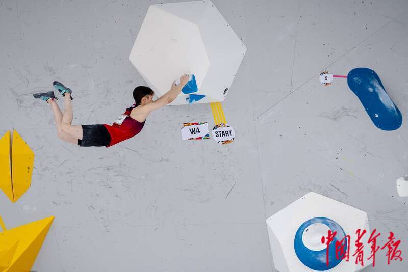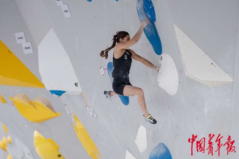 5月19日,上海,奥运资格系列赛·上海攀岩女子全能决赛,中国选手骆知鹭在比赛中。中青报·中青网记者 李隽辉/摄