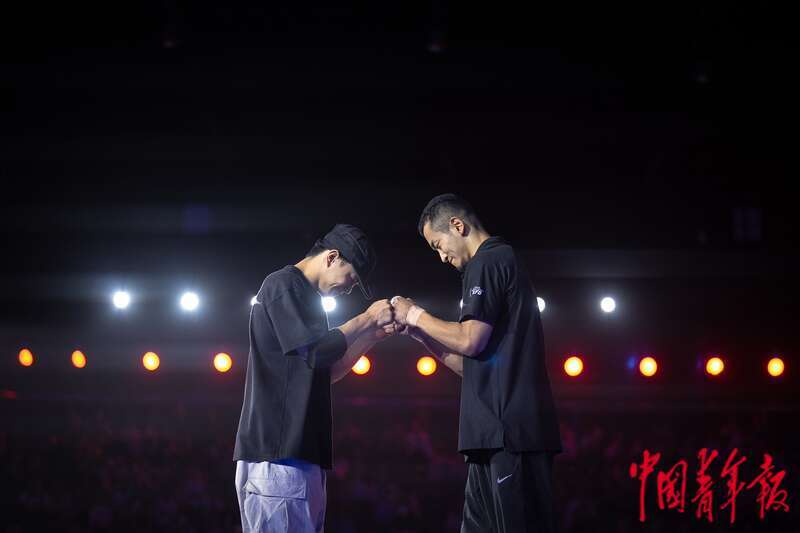 5月19日,上海,奥运资格系列赛·上海的霹雳舞男子组半决赛,日本选手HIRO10(左)和韩国选手HONGTEN在比赛开始前互相致意。中青报·中青网记者 李隽辉/摄