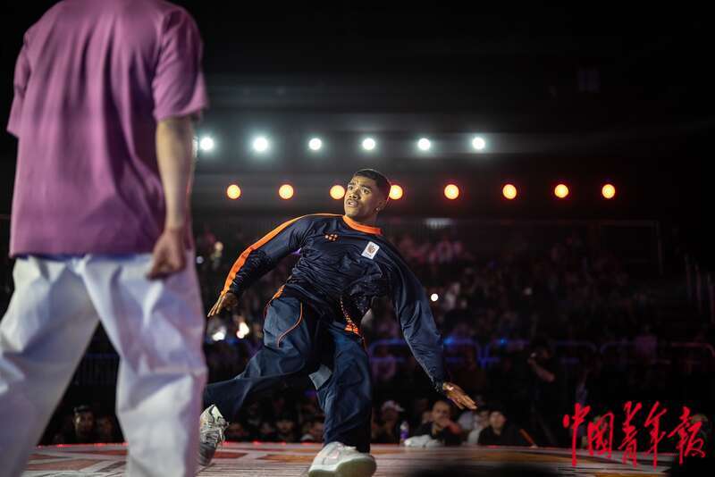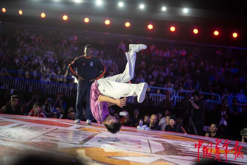 5月19日,上海,奥运资格系列赛·上海最后一个比赛日,滑板、攀岩和霹雳舞项目的8项比赛分出胜负。中国霹雳舞选手亓祥宇获得男子组亚军;攀岩女子全能的比赛中,进入决赛的中国选手骆知鹭名列第七;崔宸曦和曾文蕙在女子滑板街式的决赛中名列第五和第七。图为霹雳舞选手亓祥宇在决赛中。中青报·中青网记者 李隽辉/摄