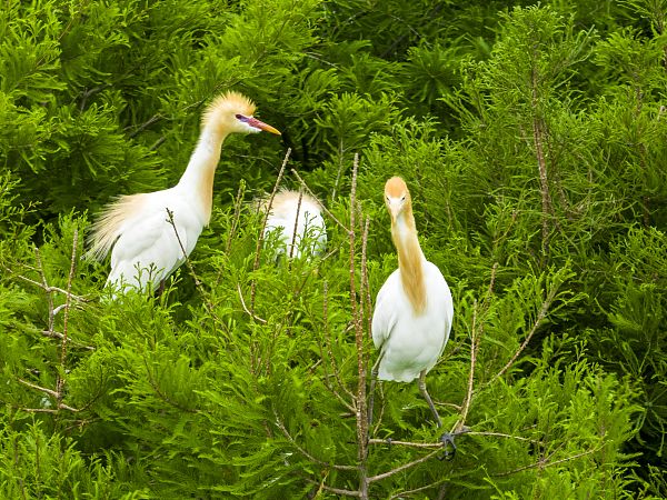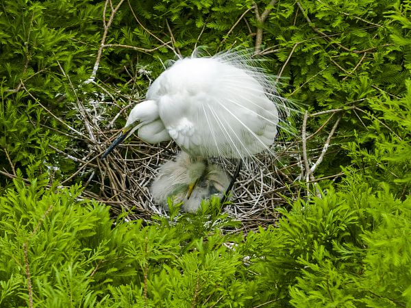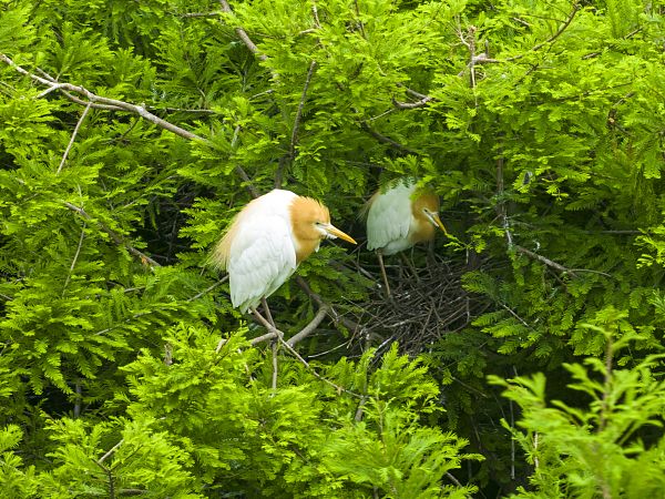2024年5月21日,江苏省连云港市东海县西双湖湿地公园,众多白鹭、牛背鹭、池鹭、苍鹭等鹭鸟在水杉林里筑巢哺育幼鸟。近年来,随着东海县大力推进水资源和湿地保护修复治理,加强动植物保护,湿地生物多样性日益丰富,湿地成为了众多鸟儿的“家园”。