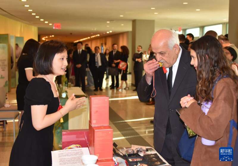中国常驻联合国代表团21日晚协同中国文化和旅游部在纽约联合国总部举办“茶和天下”国际茶日展示和庆祝活动。河南信阳作为中国著名产茶区,受邀参加活动。来自信阳的剪纸、面塑、皮影戏传承人在现场展示了精湛技艺,茶艺师们泡制了当地闻名的信阳毛尖,茶香令在场的嘉宾陶醉。