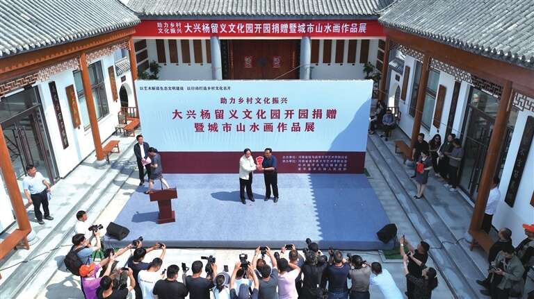 本报讯 “现在,我宣布,大兴杨留义文化园开园捐赠暨城市山水画作品展开幕!”5月15日上午,随着中国关心下一代工作委员会常务副主任胡振民铿锵的话语,由驻马店市文学艺术界联合会主办,遂平县文学艺术界联合会、中共常庄镇党委、常庄镇人民政府承办的“助力乡村文化振兴 大兴杨留义文化园开园捐赠暨城市山水画作品展”在河南省遂平县常庄镇大兴村开幕。