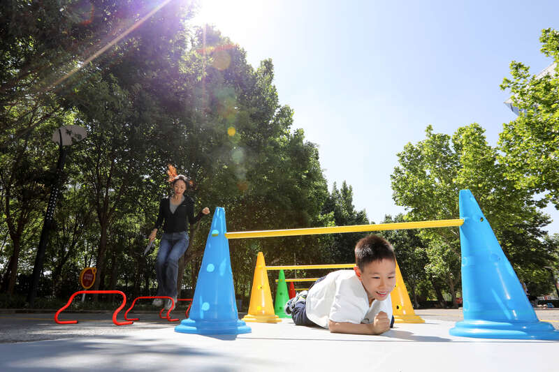 无敌风火轮、海上大营救、城市清洁师……现场设置了8个有趣的体能活动。孩子与家长一起努力将“飞镖”精准投掷到镖盘上,手忙脚乱地通过赛道,同心协力完成亲子跳绳,勇敢地通过“风雪”,完成“勇敢者挑战”……丰富的项目让少年儿童充分感受到体育运动的魅力。参赛人员以家庭为单位进行分组,根据比赛线路抽签结果按照顺序前往地标点位完成活动任务。竞赛过程中,家庭成员相互合作,并肩作战,增进了亲子感情。