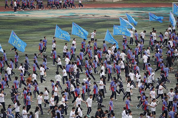 2024年5月27日,初夏时节,南宁市东盟中学在大课间开展的千人跑操活动,场面壮观、动感十足,充满了青春的气息与活力,成为校园一道靓丽风景线。