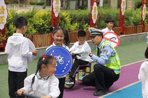 2024年5月29日,辽宁阜新,公安局交警支队细河大队民警走进辖区洪恩幼儿园开展交通安全宣传活动。