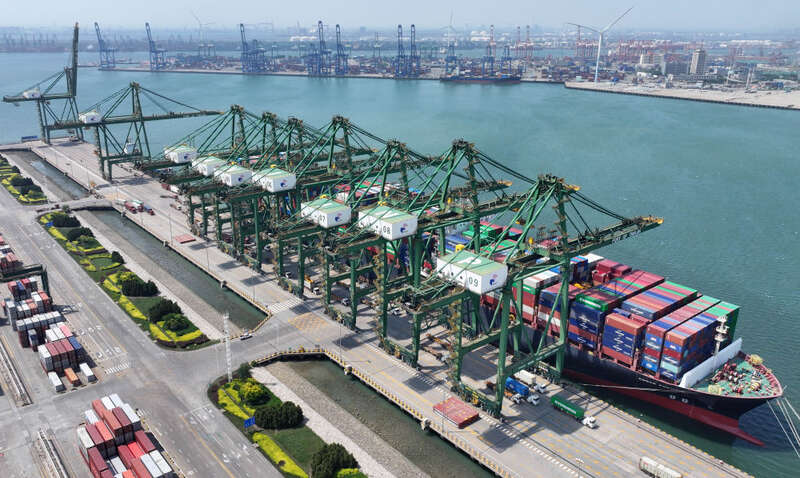 乘着京津冀协同发展和共建“一带一路”的东风,依托港口战略资源核心优势,天津加快建设北方国际航运核心区。天津市港航局综合业务处处长邹鸾说,天津港通达全球180多个国家和地区的500多个港口。2024年1月至4月,天津港完成货物吞吐量1.88亿吨,同比增长3.5%,集装箱吞吐量739.81万标箱,同比增长6.2%,再创历史同期新高,带动天津市外贸规模进一步扩大。