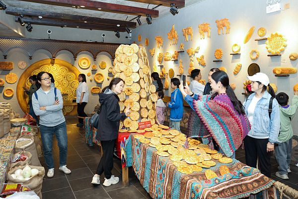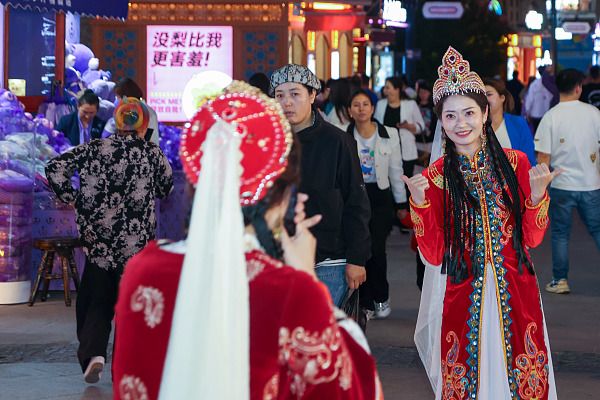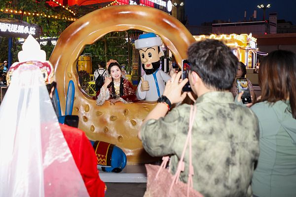 2024年5月30日,游客在新疆国际大巴扎景区拍照。