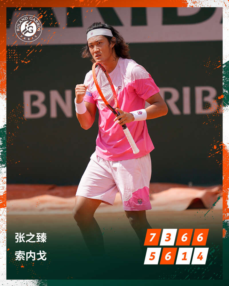 这是张之臻连续第二年打入法网男单32强,他在下一轮的对手将是希腊名将、赛会9号种子西西帕斯。