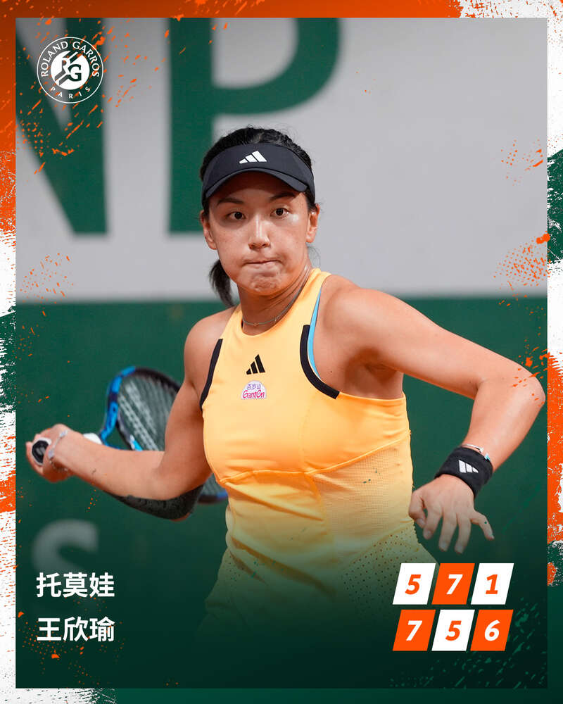 在法网女单第二轮中,郑钦文6:2/6:2连下两盘淘汰科帕奇,顺利晋级;王欣瑜以7:5/5:7/6:1击败托莫娃,实现对后者三连胜。男单次轮中,张之臻以7:5/3:6/6:1/6:4战胜索内戈,同样晋级32强。