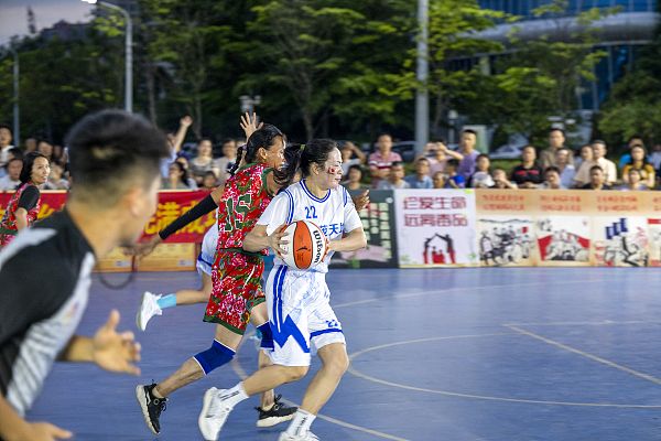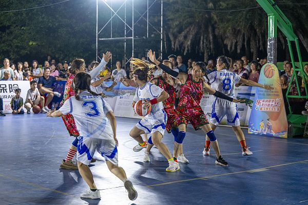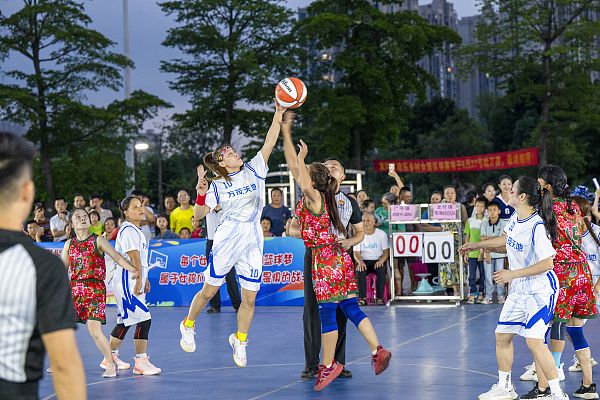 2024年5月30日晚,在广西梧州市龙圩区苍海展示中心,龙圩区欢乐乡村女篮比赛正在进行中。近年来,龙圩区通过村与村、镇与镇之间的女篮比赛,推动文体旅深入融合,助力乡村振兴及地方经济社会高质量发展。