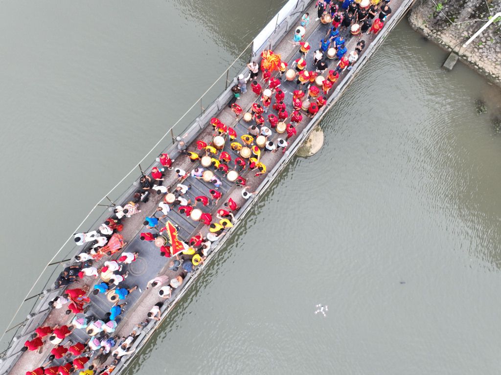 2024年5月31日,在湖南省永州市道县城区街头,人们在进行龙船习俗非遗文化巡游。