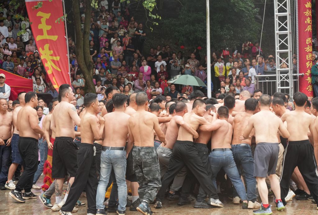 2024年5月31日,广西柳州,融水苗族自治县和睦镇,各族青年在抢花炮。