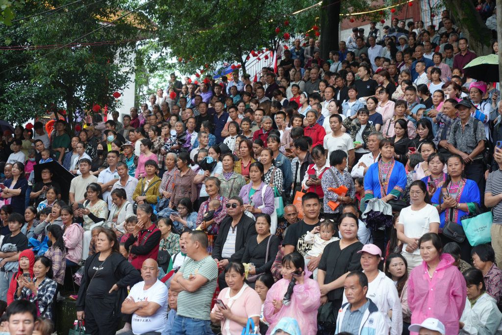 2024年5月31日,广西柳州,融水苗族自治县和睦镇,各族群众和游人聚在一起观看节日系列文体活动。