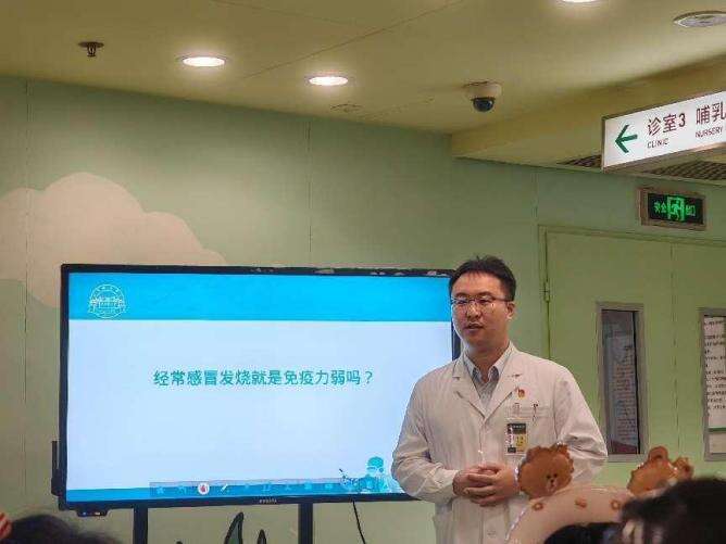 北京协和医院副主任医师李冀在儿科门诊为家长科普儿童免疫相关知识。 刘恺骁/摄