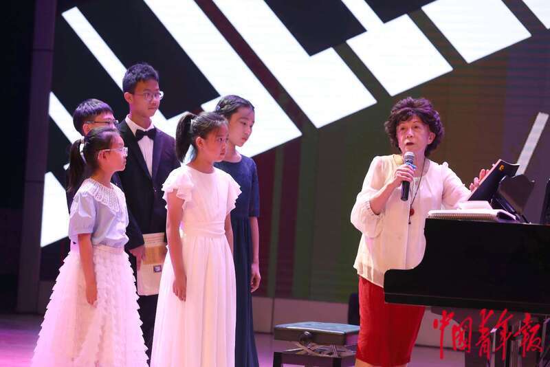 6月1日,北京市朝阳区青少年活动中心,著名钢琴家鲍蕙荞老师(右一)为参加完演出的一组学员进行点评指导。当日是“六一”国际儿童节,一场关于钢琴拔尖创新人才成果汇报的音乐会在这里举行,小琴童们通过汇报演出的方式度过一个特别的儿童节。中青报·中青网记者 陈剑/摄