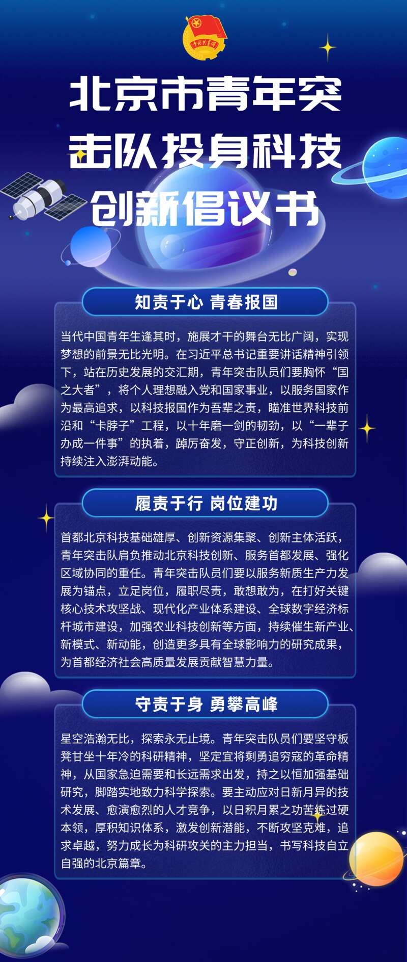北京市青年突击队投身科技创新倡议书。团北京市委供图
