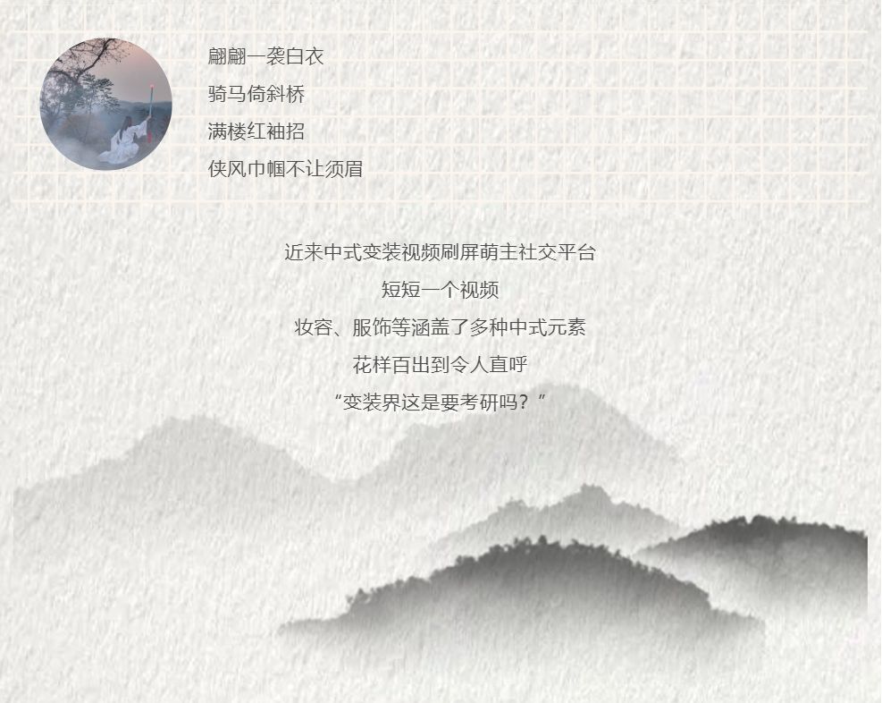 粉面一扑,朱唇一点,镜头一转,视频中的女子瞬间变成走进中国画中的古典美人……近期,萌主刷到了许多诸如此类的中式变装视频,中式变装为什么一跃成为潮流,跟着萌主一起来看看吧!