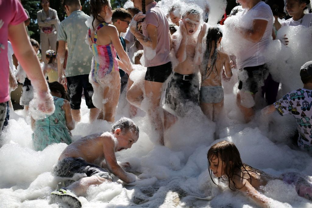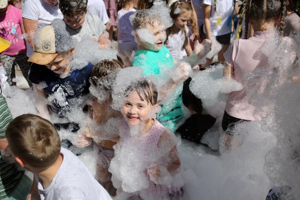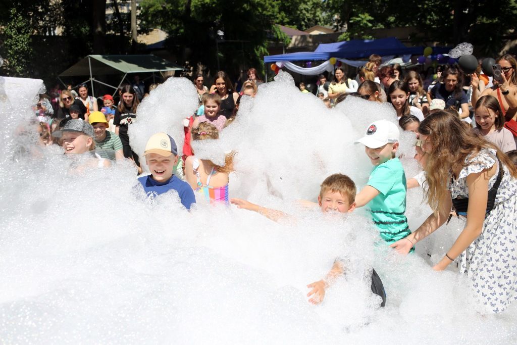 当地时间2024年6月1日,乌克兰敖德萨,孩子们在夏季剧院的泡沫派对上玩得很开心。为了庆祝国际儿童节,敖德萨市政府在夏季剧院为孩子们组织了一场免费的泡沫派对。