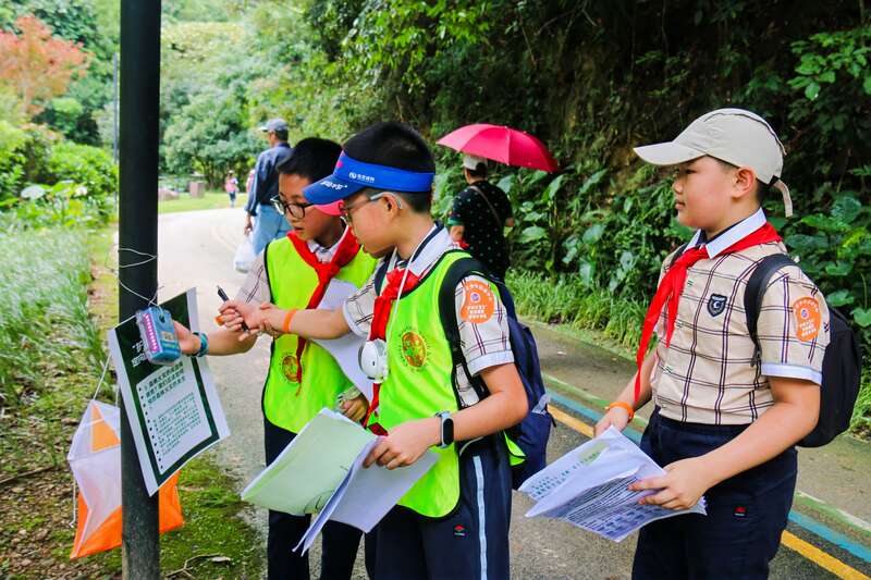 少先队员们在参加“护林小卫士”定向越野研学活动。南宁市青少年活动中心供图