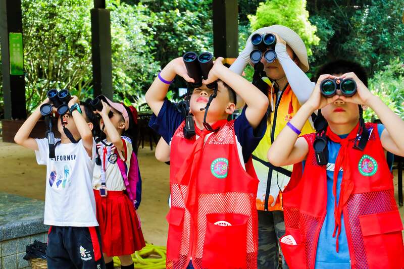 少先队员们在参加“林中飞羽精灵”观鸟研学活动。南宁市青少年活动中心供图