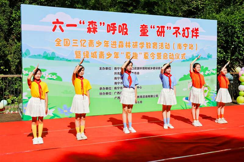 中国青年报客户端讯(中青报·中青网见习记者 吴欣宇 记者 谢洋)6月1日,由共青团南宁市委、南宁市林业局、南宁市政协人口资源环境和城乡建设委员会、南宁市少工委主办,南宁市青少年活动中心承办的“六一‘森’呼吸 童‘研’不打烊”——全国三亿青少年进森林研学教育活动(南宁站)暨绿城青少年“夏趣”夏令营启动仪式在广西高峰森林公园举行,400多人参加活动。