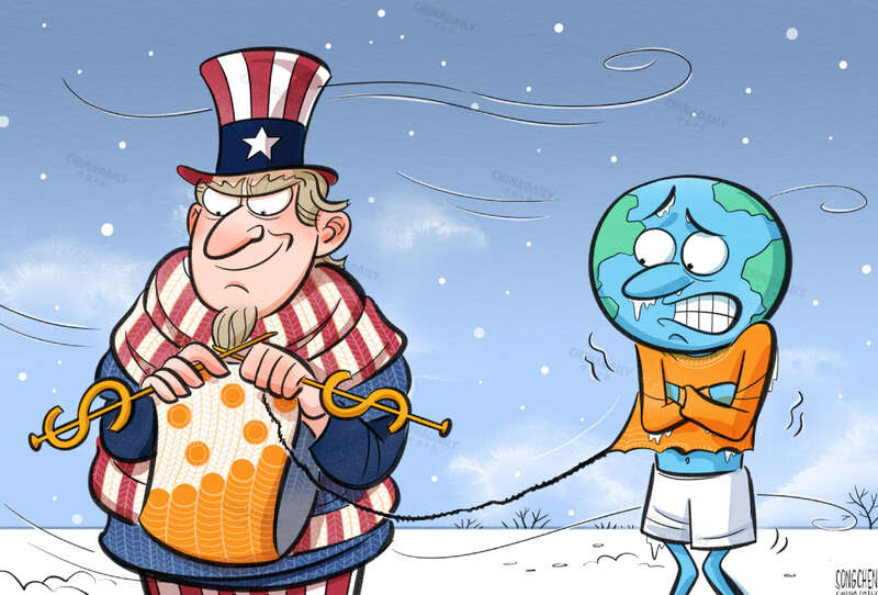 中国日报漫画:美联储不断收割全球财富、转嫁危机